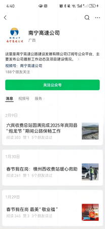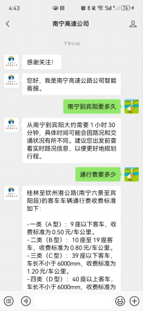 司乘只需關(guān)注“南寧高速公司”微信公眾號,點擊發(fā)消息即可輕松開啟在線咨詢之旅。這種將AI智能客服融入微信公眾號的方式,充分考慮了司乘人員的使用習(xí)慣,進一步拉近了企業(yè)與司乘之間的距離。