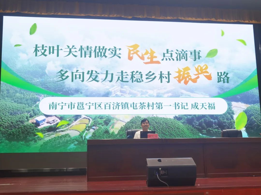6月17日,南寧市委組織部在市委黨校舉辦2025年新一輪駐村第一書記示范培訓(xùn)班,邀請(qǐng)了南寧交投集團(tuán)下屬南寧高速公路公司選派邕寧區(qū)百濟(jì)鎮(zhèn)屯茶村原第一書記成天福進(jìn)行授課。